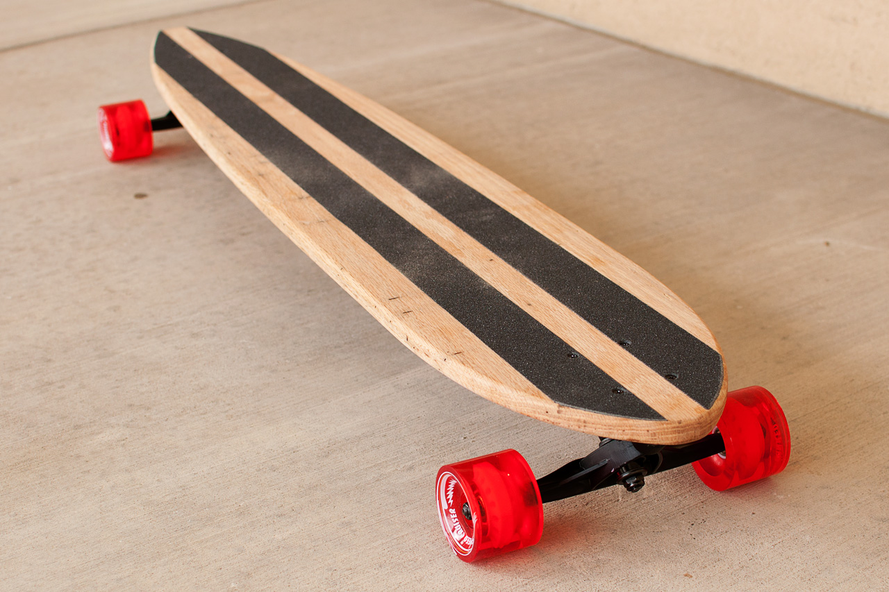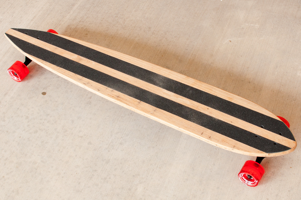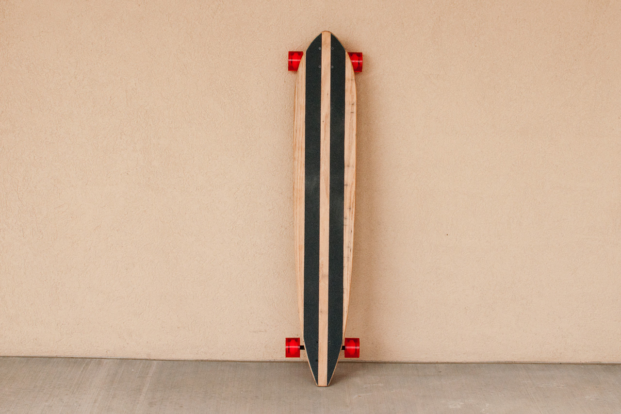 The Pintail 48 is the first in the line of extra long solid wood longboards. At 48 inches long and 8 1/2 inches wide, this beauty is a joy to ride. Made from a variety of materials, the Pintail 48 is available in solid oak, solid cherry, walnut and maple -shown here in solid oak.